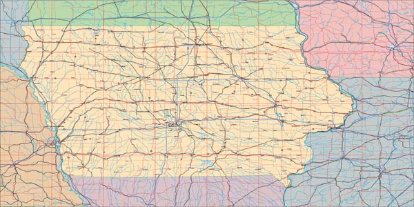 ![]() Detail view of EPS Vector Map of Iowa - the land fill color is switched on. The EPS Vector map for Iowa has 24 layers which may be individually modified or removed. Select the Vector only EPS map of Iowa option to download this style map. |
