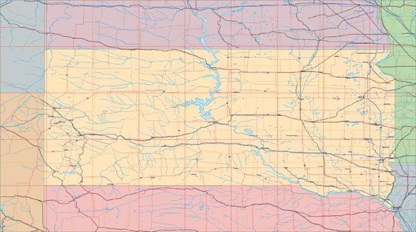 | Map identification: | South Dakota | Projection system: | Geographic / Plate Carree |