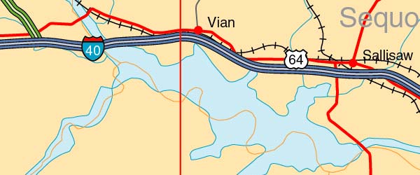 |  Detail view of EPS Vector Map of Oklahoma - the land fill color is switched on. The EPS Vector map for Oklahoma has 25 layers which may be individually modified or removed. Select the Vector only EPS map of Oklahomaa option to download this style map. |